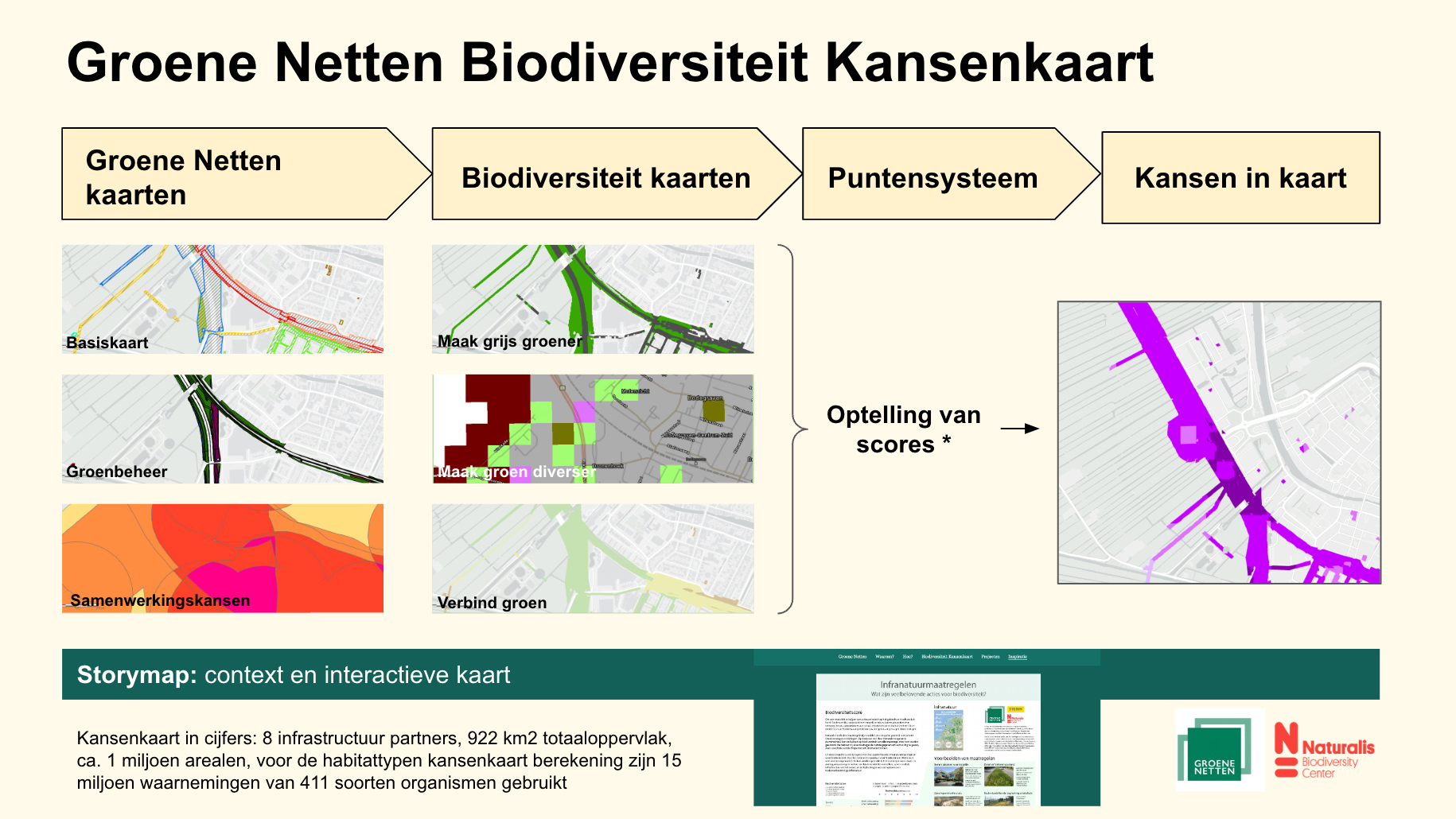 De kaarten zijn opgenomen in een ArcGIS Storymap website waarbij ook uitleg en context gegeven is over biodiversiteit en het belang ervan.